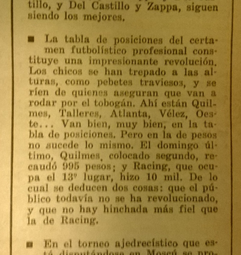 - Racing terminó 6º en la tabla general de la temporada, pero 1° en la tabla de recaudaciones.